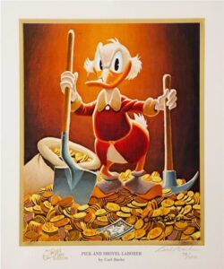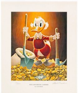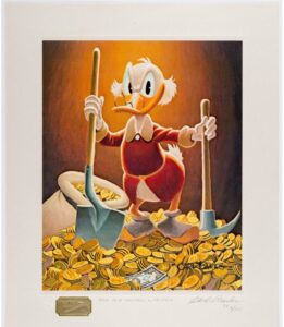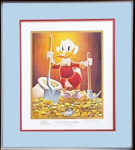 In the period 1982 – 2000, Another Rainbow released a total of 26 large lithographs, two medium-sized lithographs and 18 mini-lithographs based on Carl Barks’ oil paintings.