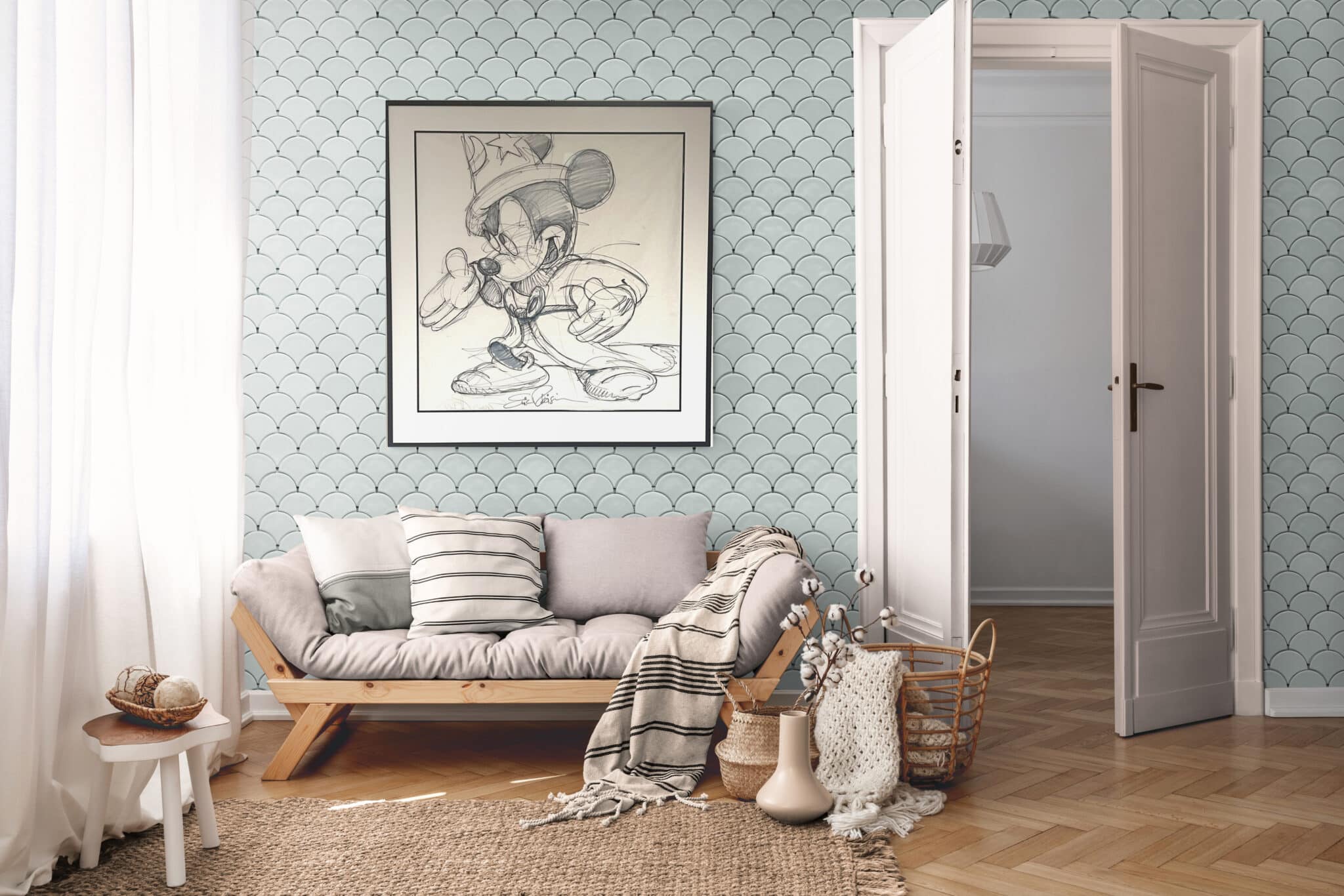 Very large and lavishly detailed original study in pen and ink on onion skin paper for Eric Robison’s 2023 painting titled ‘Brooms Beware!’. The artwork is hand-signed by Robison and has been professionally framed and matted behind museum-quality glass to a total size of a whopping 106 x 100 cm.