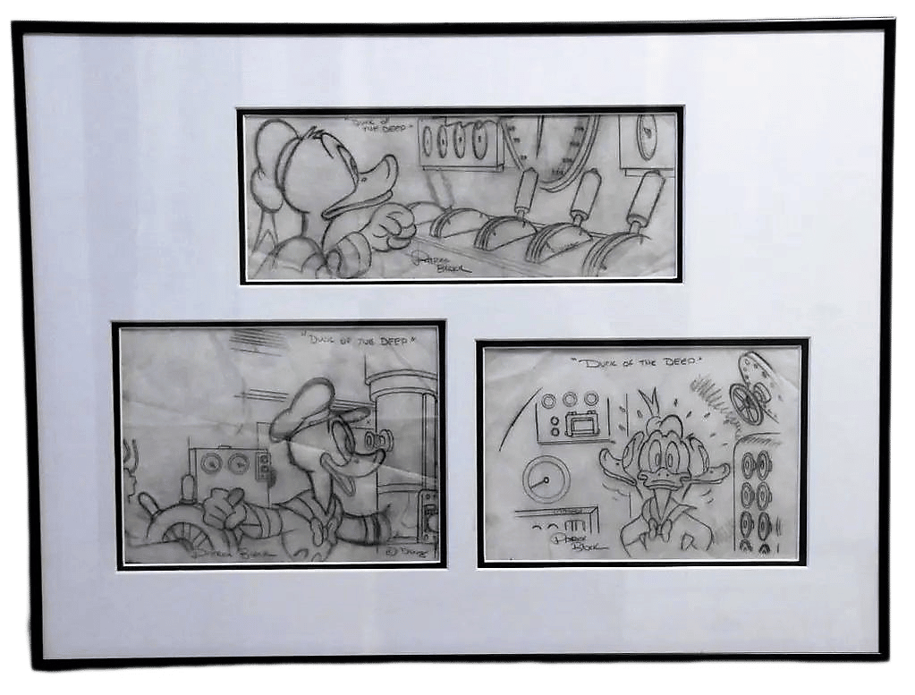 Home / Artists / Patrick Block / Pencil preliminaries / Duck of the Deep – set 1 Duck of the Deep – set 1 €450.00 Out of stock Categories: Patrick Block, Pencil preliminaries Description Description Three preliminary panels used in Patrick and Shelly’s story titled ‘Duck of the Deep’. Professionally framed to a total size of 40 x 55 cm. Related products Portrait Series: Pluto 0 out of 5 €70.00 Add to cart Portrait Series: Chip ‘n Dale 0 out of 5 €70.00 Add to cart Sir Christopher Wrenn, Who Was He? 0 out of 5 €3,350.00 Add to cart Goofy and Clarabelle 0 out of 5 €950.00 Add to cart