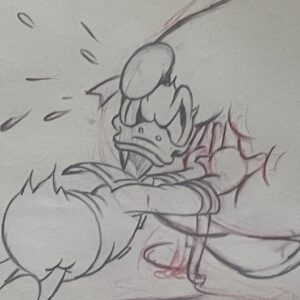 Created by Disney Legend Tom Wood in 1938, this vibrant piece transports viewers into a classic scene featuring ‘Good Scout’ Donald Duck about to do a good deed that will surely backfire on him.
