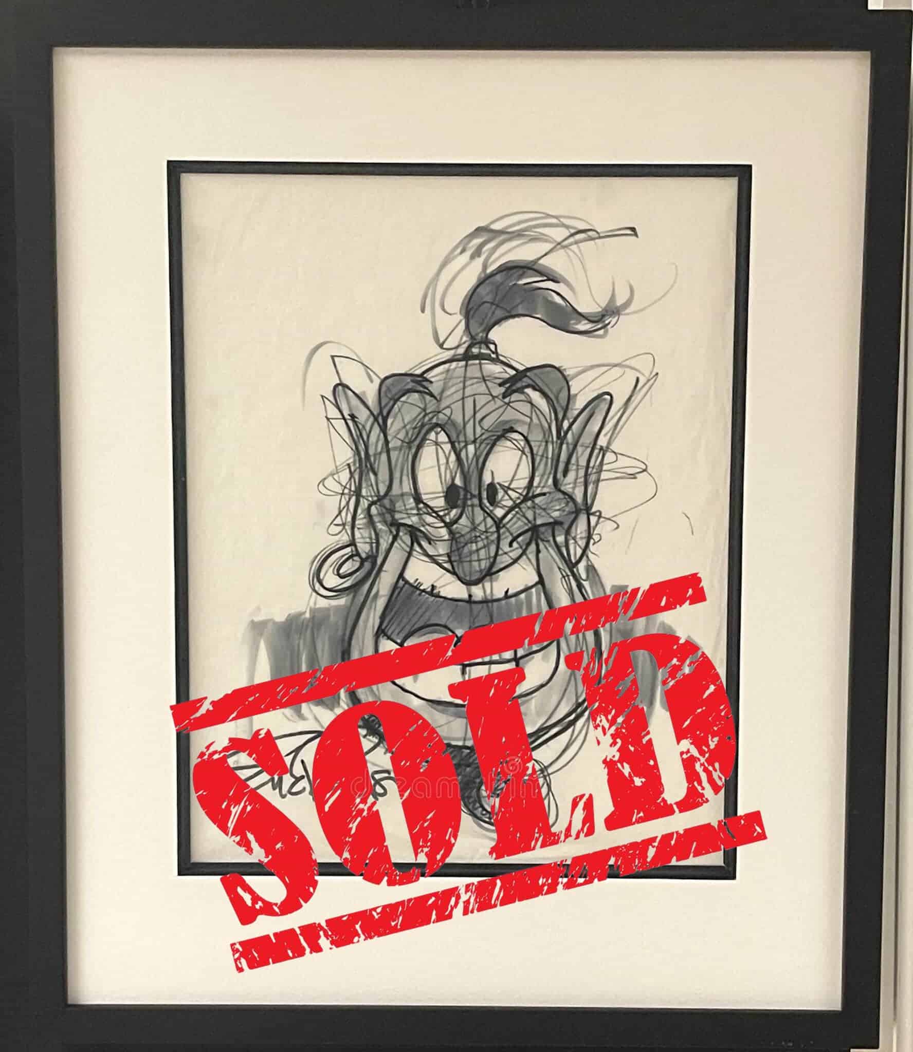 Original pencil portrait featuring Genie by Eric Robison. This beautiful study is rendered in pencil, pen and ink on onion-skin paper. It has been professionally framed behind museum-quality glass to a total size of approx. 42 x 36 cm. The artwork is of course hand-signed by Robison. This is the preliminary study to the identically titled original pastel piece also offered by Gallery Disneyana+.