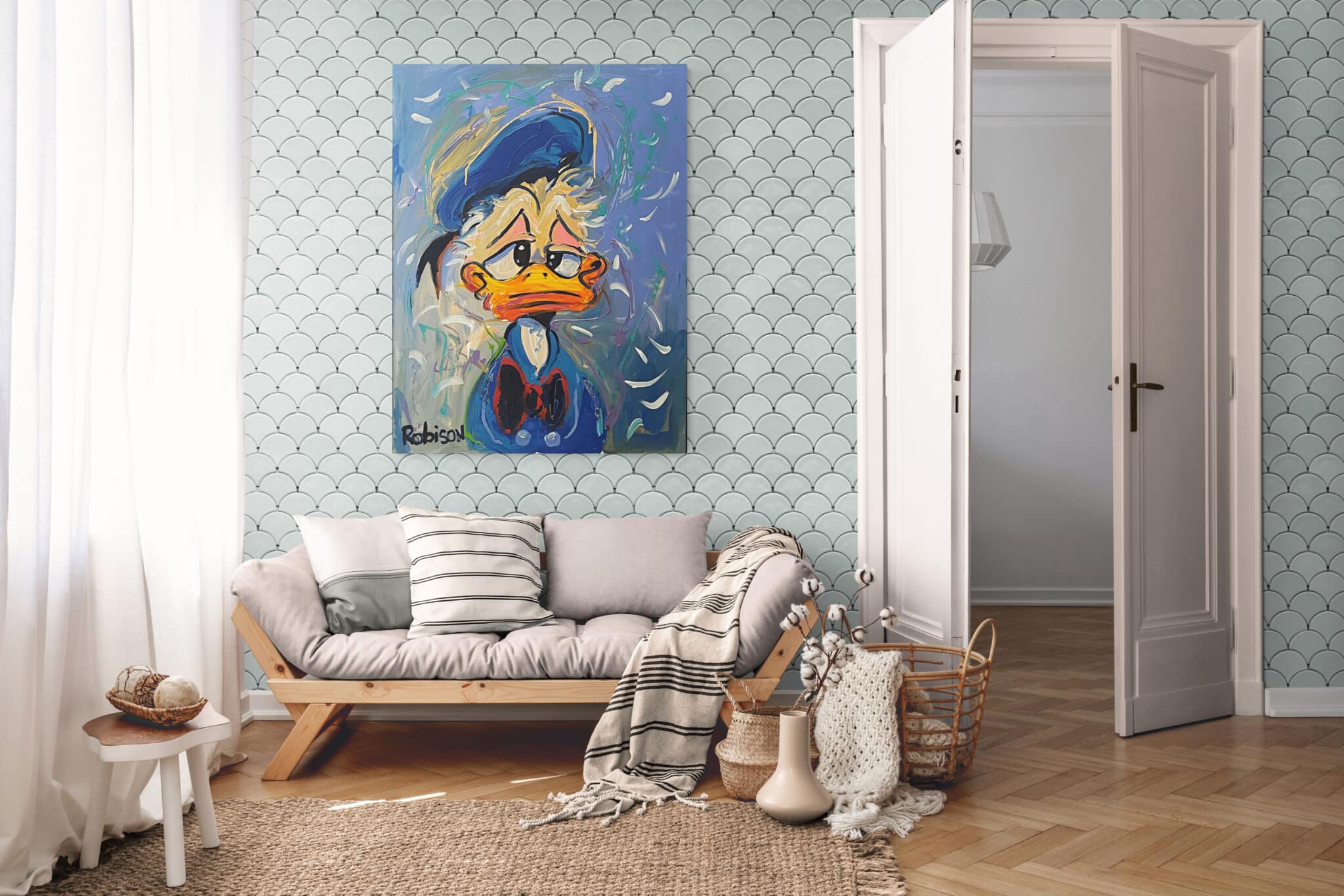 Home / Artists / Eric Robison / Unique paintings / Mellow Eyes Mellow Eyes€8,250.00 1 in stock Mellow Eyes quantity Add to cart Categories: Eric Robison, Unique paintings Description Description Bautiful and large Donald Duck painting created by Eric Robison at the 2023 Copenhagen Book Fair. The artwork is rendered in acrylics on canvas and measures an impressive 120 x 90 cm. Related products Le Château de la Belle au Bois Dormant – large castle study0 out of 5 €2,420.00 Add to cart Dancing in the Rain0 out of 5 €470.00 Add to cart Portrait series: Mickey0 out of 5 €365.00 Add to cart Inbound Irritation0 out of 5 €2,400.00 Add to cart