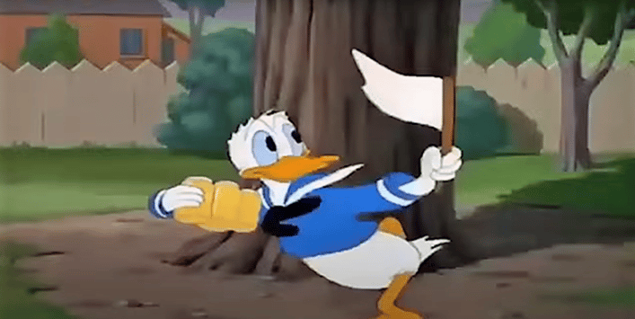 This hysterical cartoon short features loads of sight gags – and pits Donald against a new adversary, Spike the Bee. The sequence showcases feisty Donald as he waves his white flag at Spike the Bee, who is pursuing him with a terrifyingly sharp stinger made of a cactus needle.