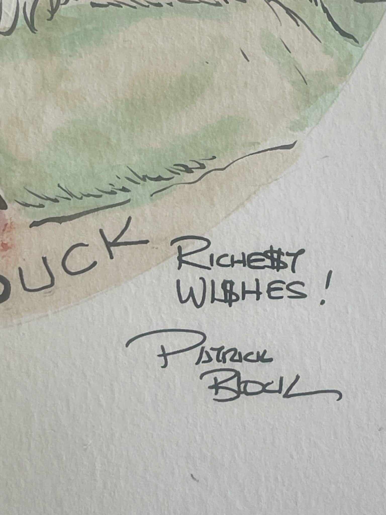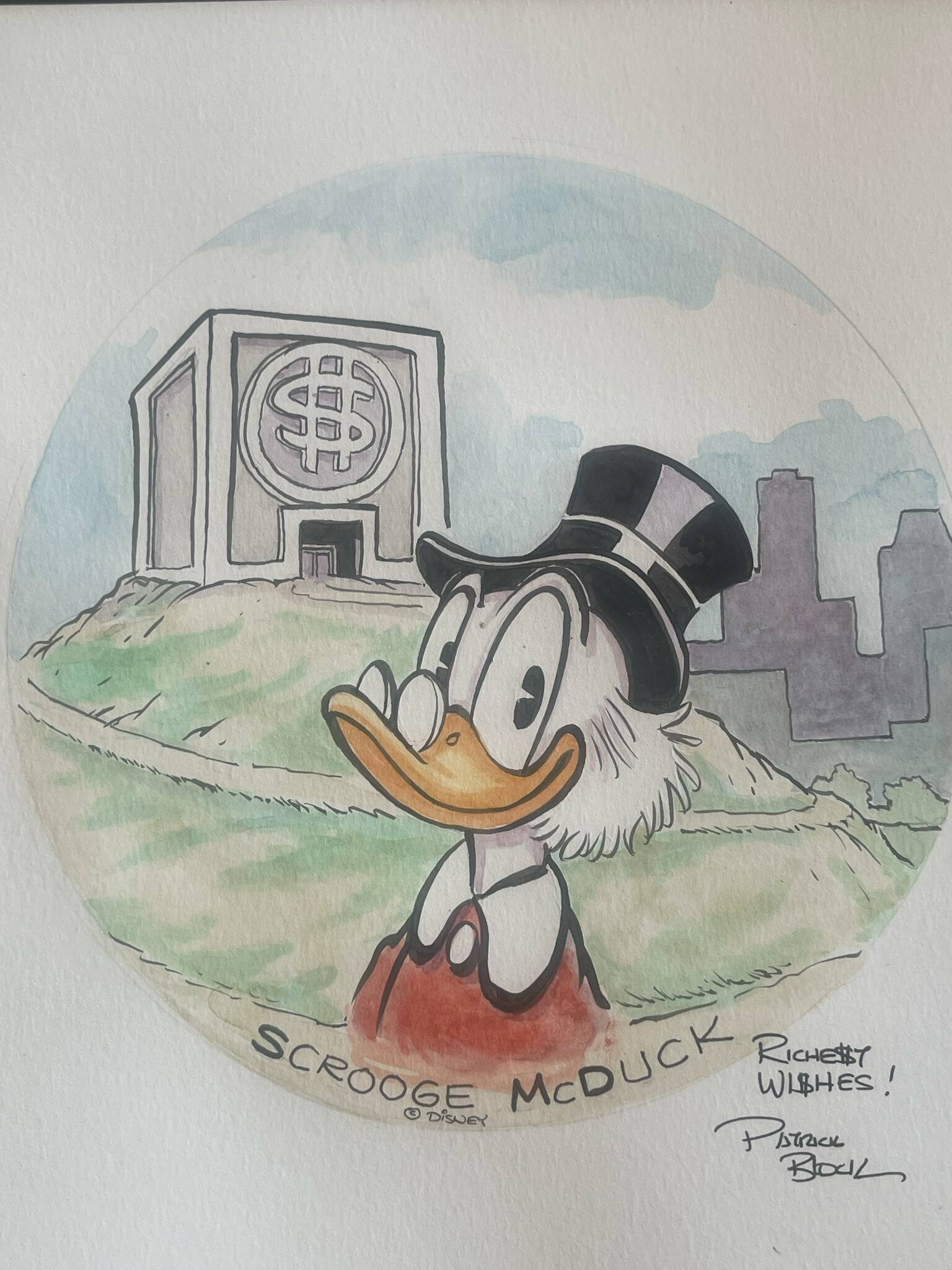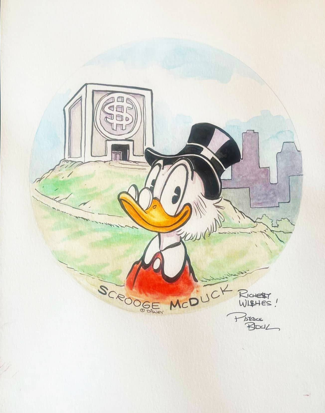 Home / Artists / Patrick Block Art for Sale / Watercolours / Miser and Money Bin Miser and Money Bin€600.00 1 in stock Miser and Money Bin quantity Add to cart Categories: Patrick Block Art for Sale, Watercolours Description Description Beautiful original watercolour portrait by Patrick Block featuring Uncle Scrooge in front of his cherised money bin. This lovely, hand-signed and watercolour is rendered on high-quality art paper and measures approx. 27,5 x 21 cm. Related products Carl Barks commemorative: The Terror of the River0 out of 5 €335.00 Add to cart Portrait Series: Daisy Duck0 out of 5 €70.00 Add to cart Goofy and Clarabelle0 out of 5 €950.00 Add to cart Portrait Series: Pluto0 out of 5 €70.00 Add to cart
