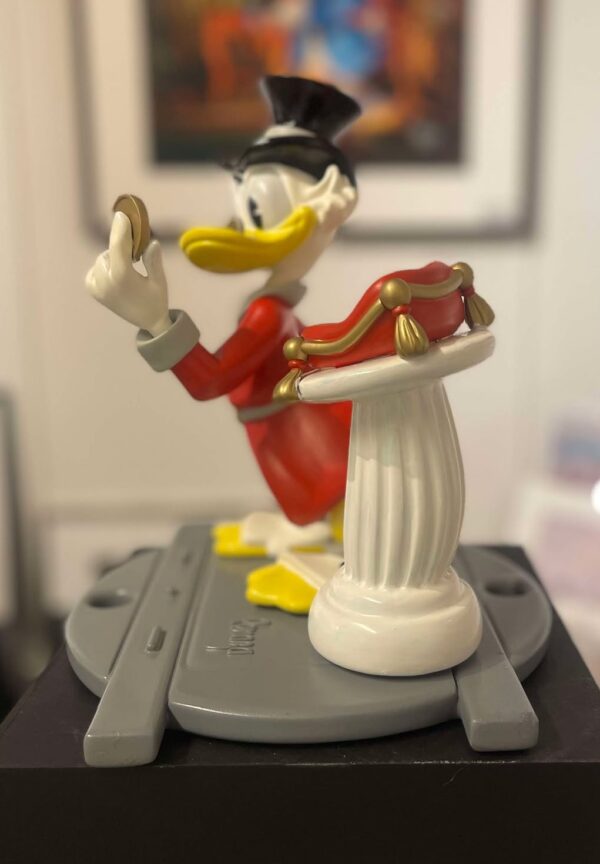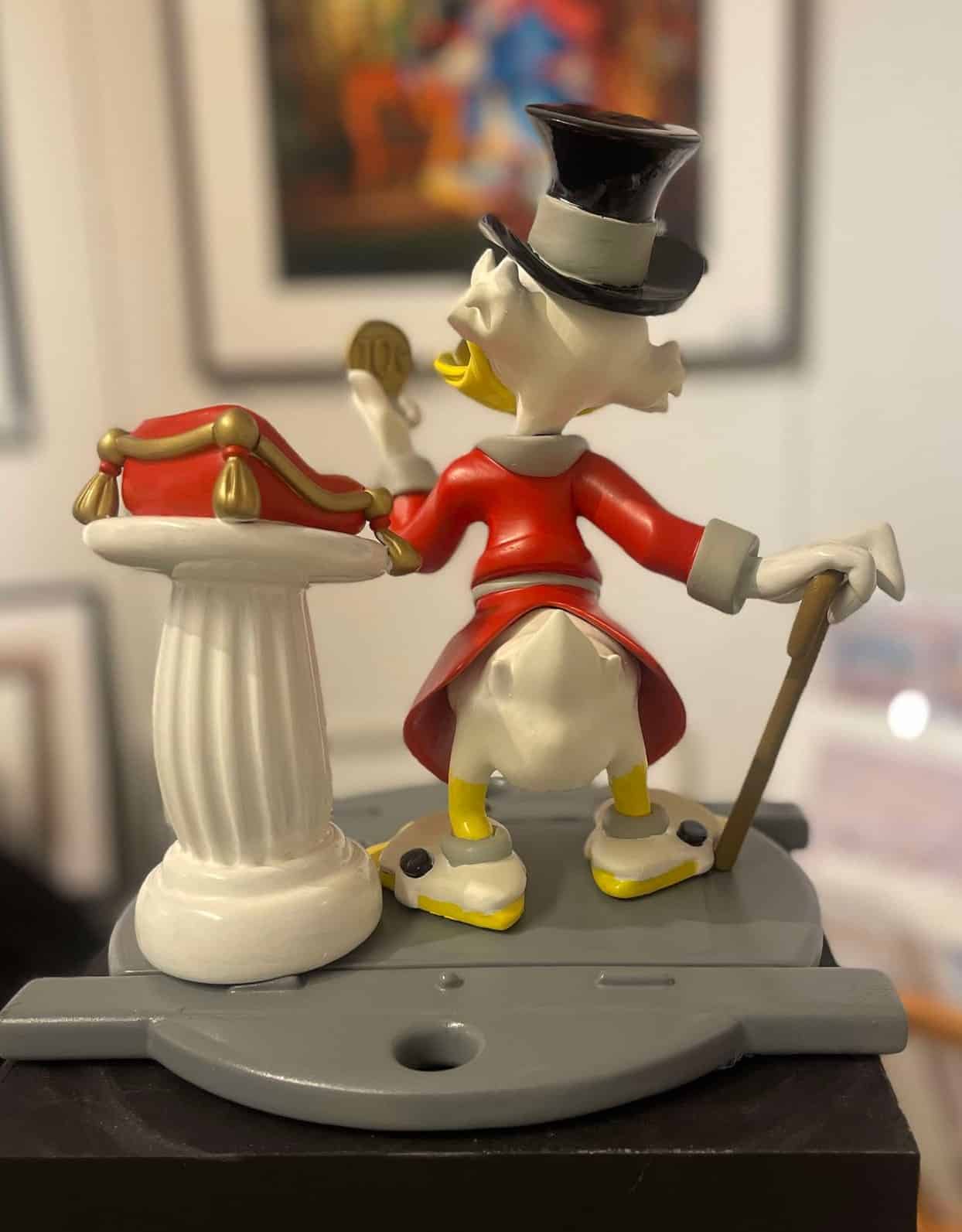 ‘Number 1 Dime’ is the first limited-edition resin figure produced and released by Gallery Disneyana+. The figure is modelled and sculpted by Mike Peraza and is the first in his ‘Animation Artist Series’ in which he will portray the beloved Disney characters. And in case you were wondering: yes, the base Scrooge is standing on is of course an animation disc.