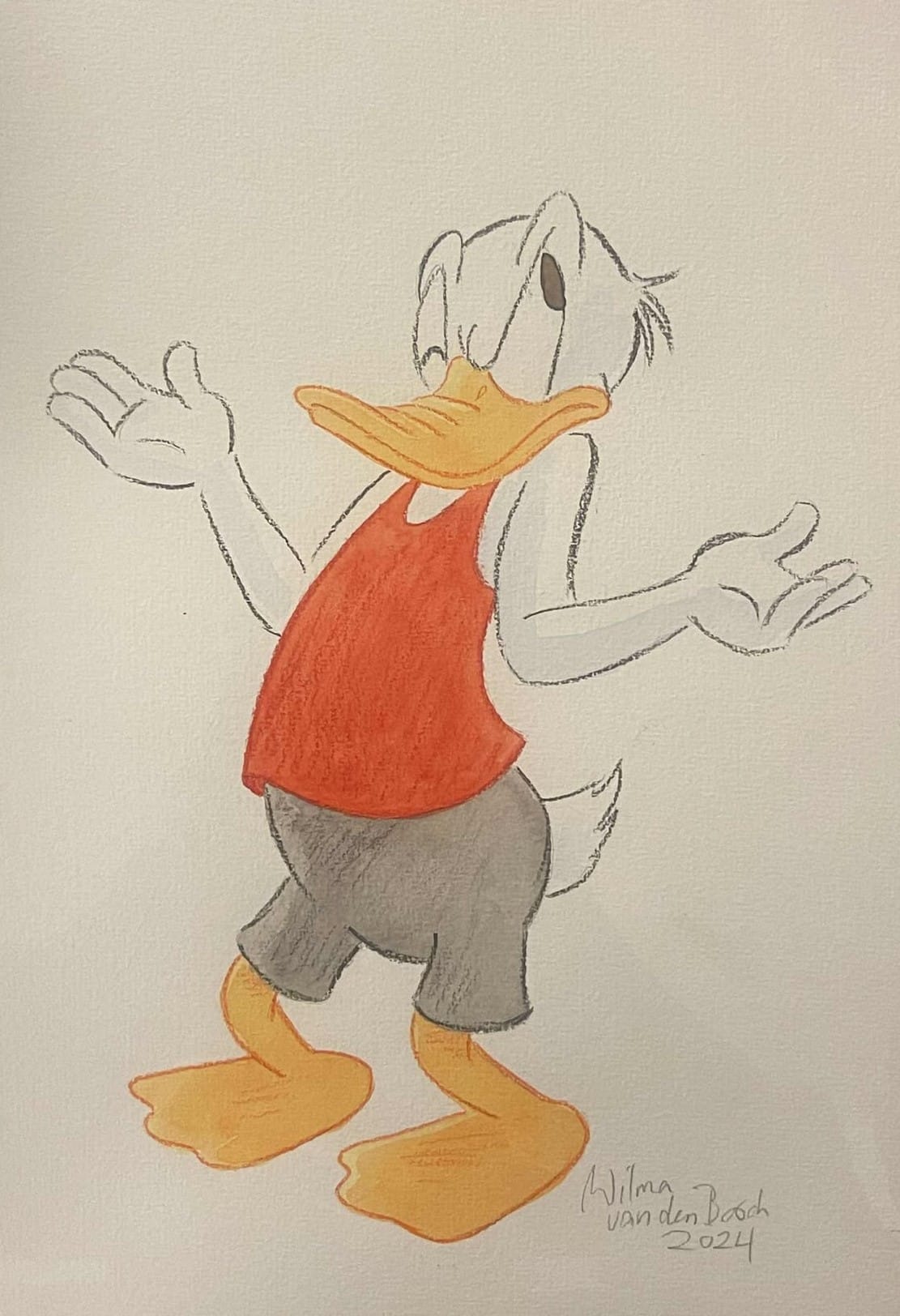 Beautiful original watercolour by Wilma van den Bosch created as part of Galleri Disneyana+’s celebration of Donald Duck’s 90th anniversary. The watercolour is rendered on high-quality art paper and measures approx. 29 x 21 cm. It is hand-signed and dated by Wilma van den Bosch in pencil.
