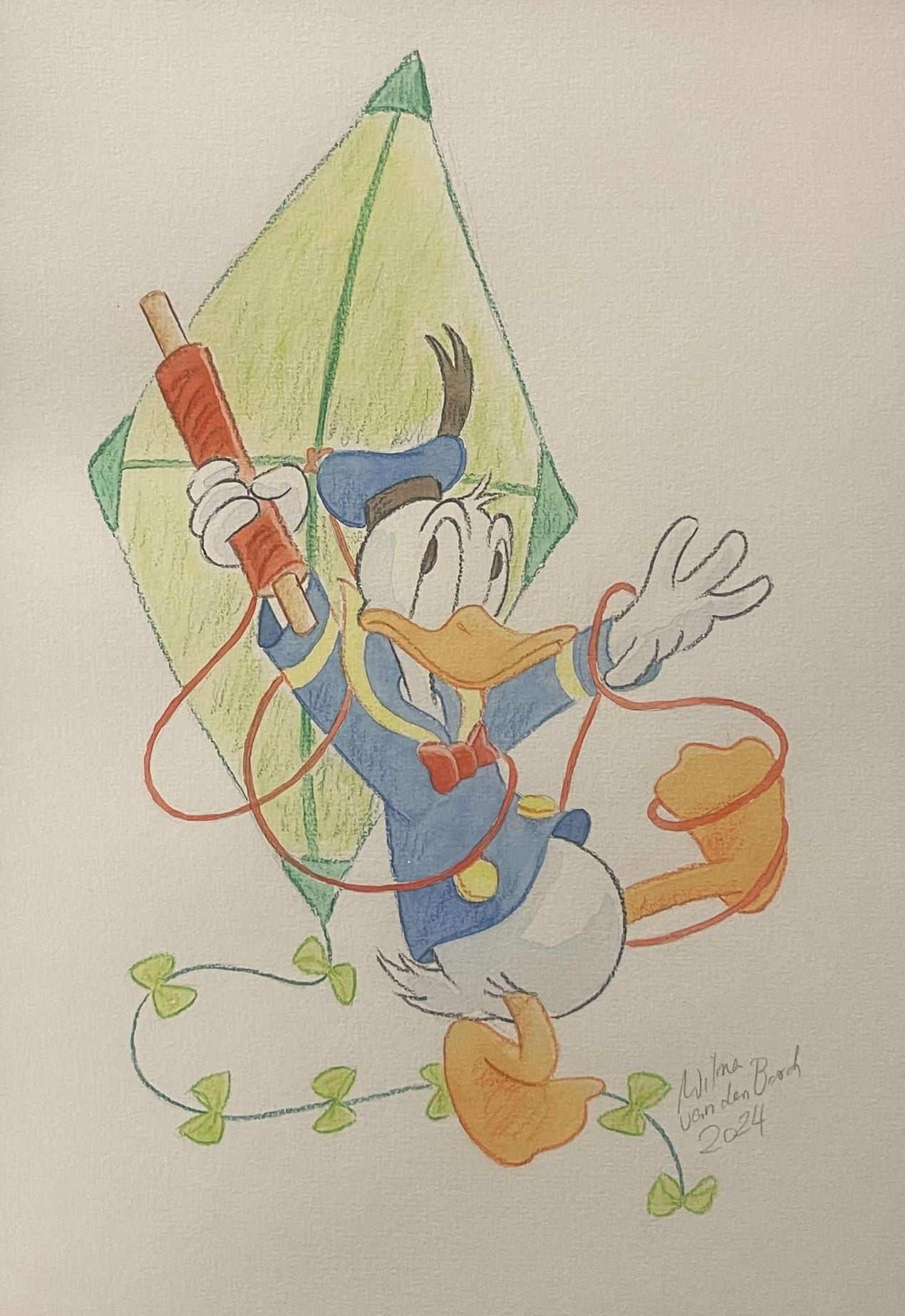 Beautiful original watercolour by Wilma van den Bosch created as part of Galleri Disneyana+’s celebration of Donald Duck’s 90th anniversary. The watercolour is rendered on high-quality art paper and measures approx. 29 x 21 cm. It is hand-signed and dated by Wilma van den Bosch in pencil.