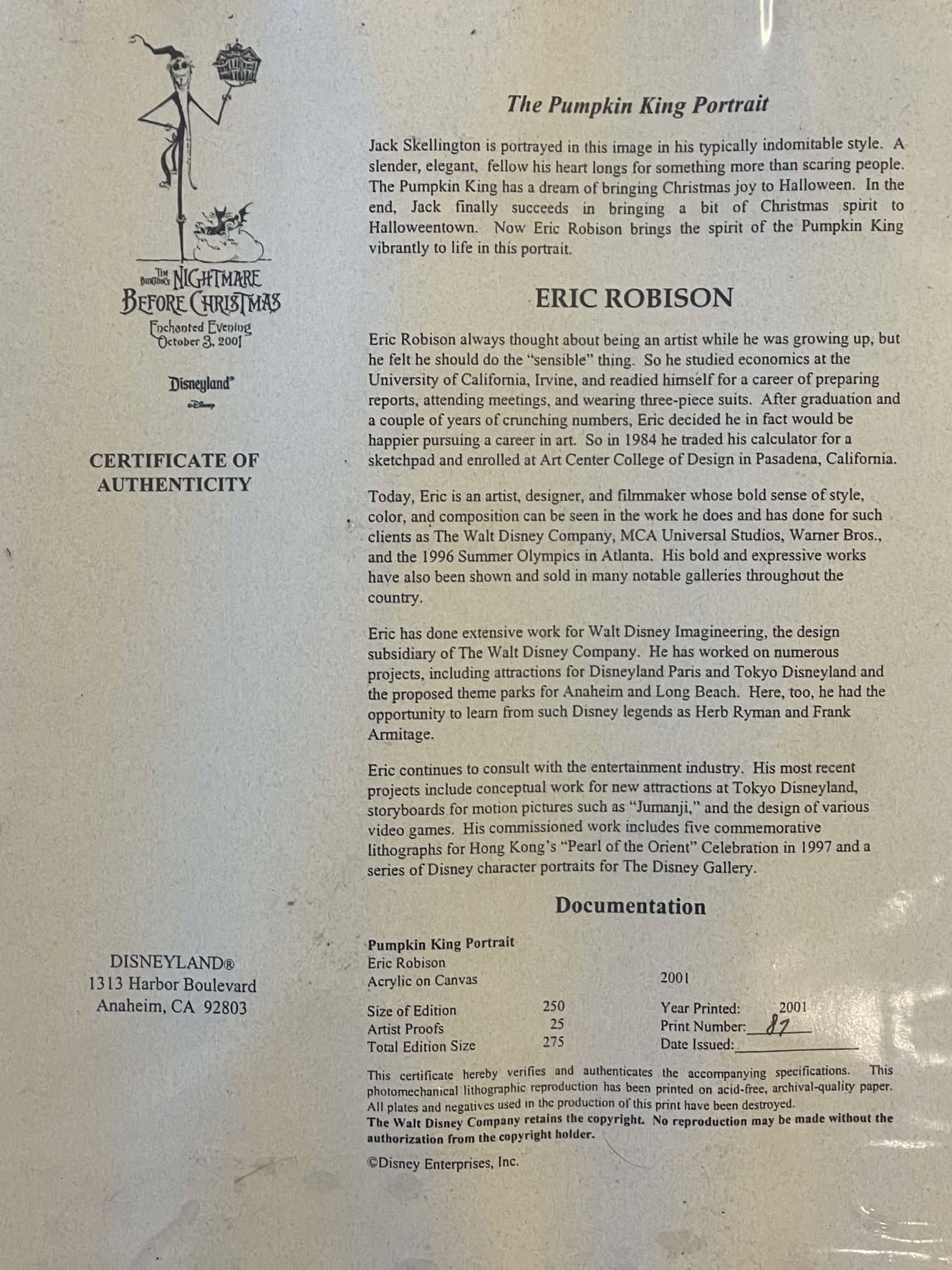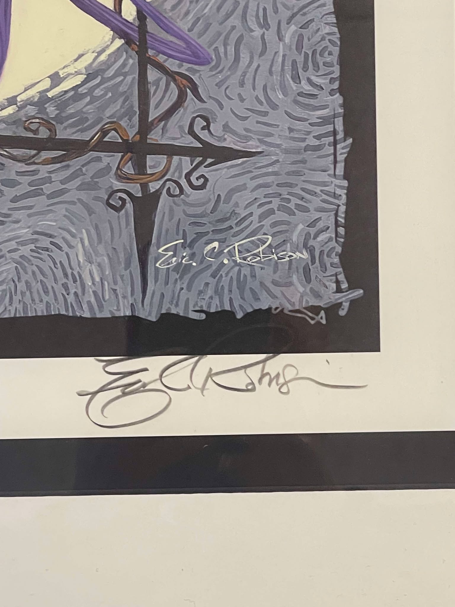 Beautiful and rare lithograph released in 2001. Hand-signed by Eric Robison and numbered 87/500. Framed and matted to a total size of 50 x 50 cm and accompanied by the original, identically numbered CoA.